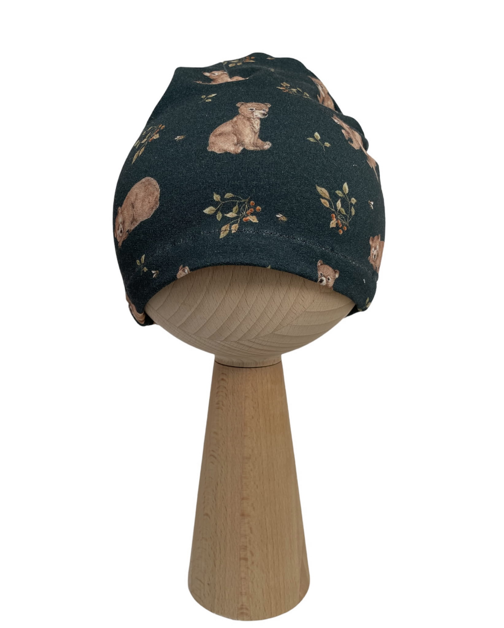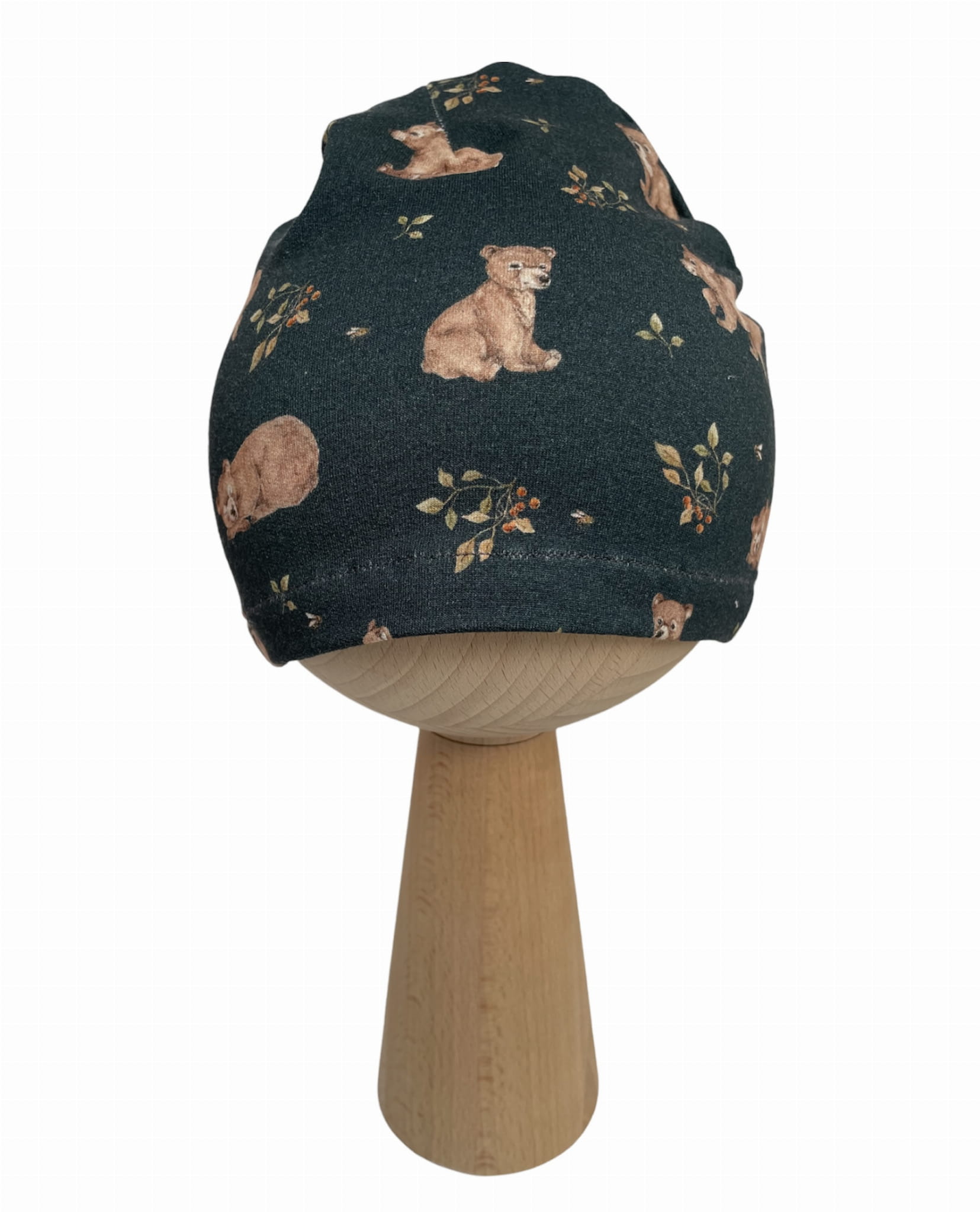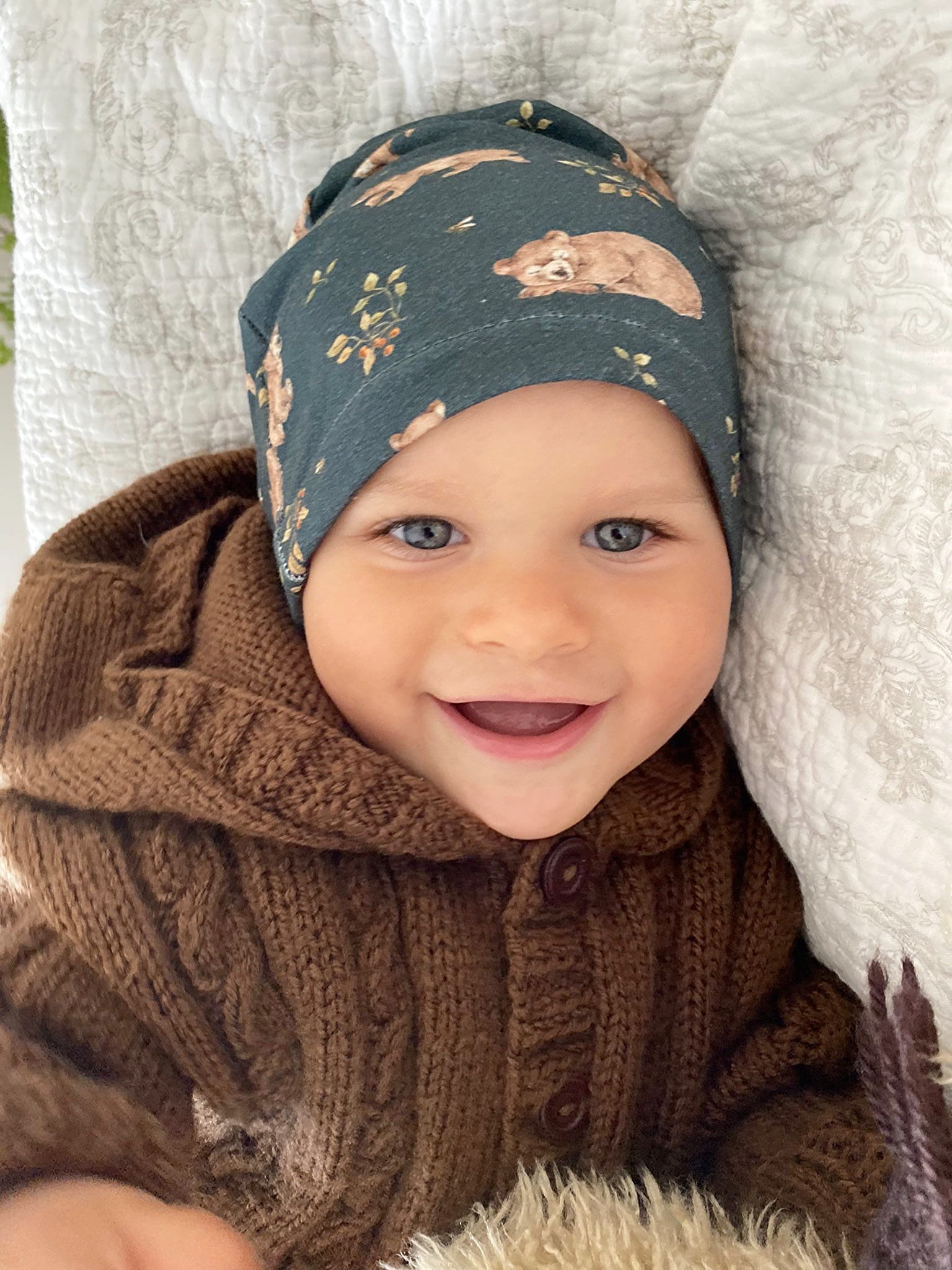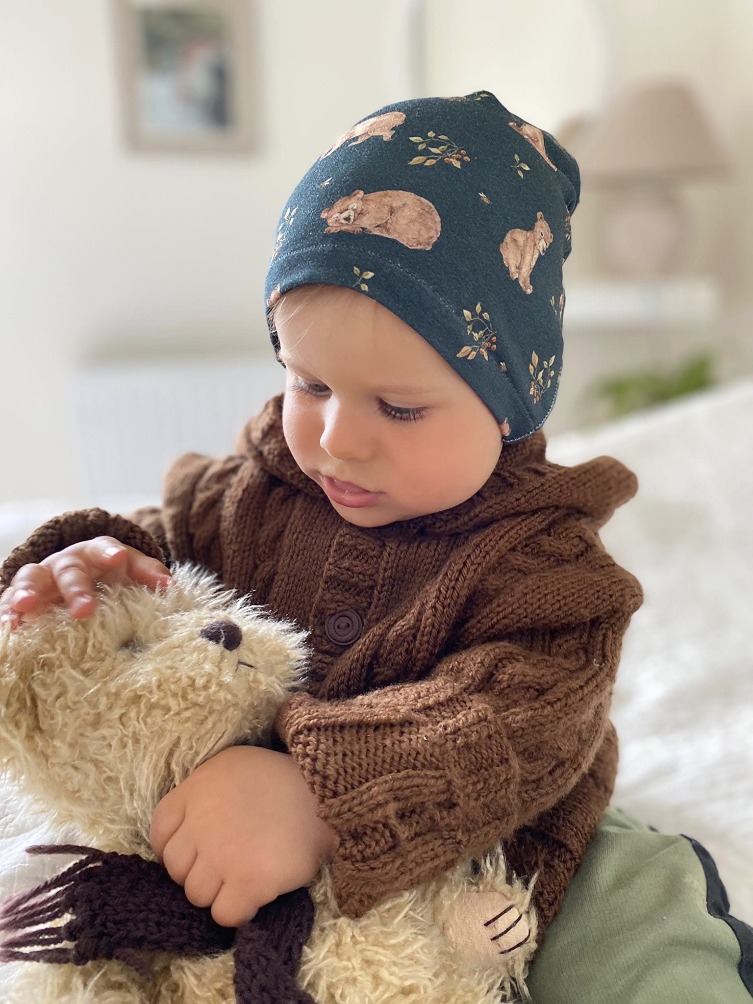 Czapka dla chłopca MISIE NA GRANACIE idealnie sprawdzi się wiosną oraz na chłodne letnie wieczory.