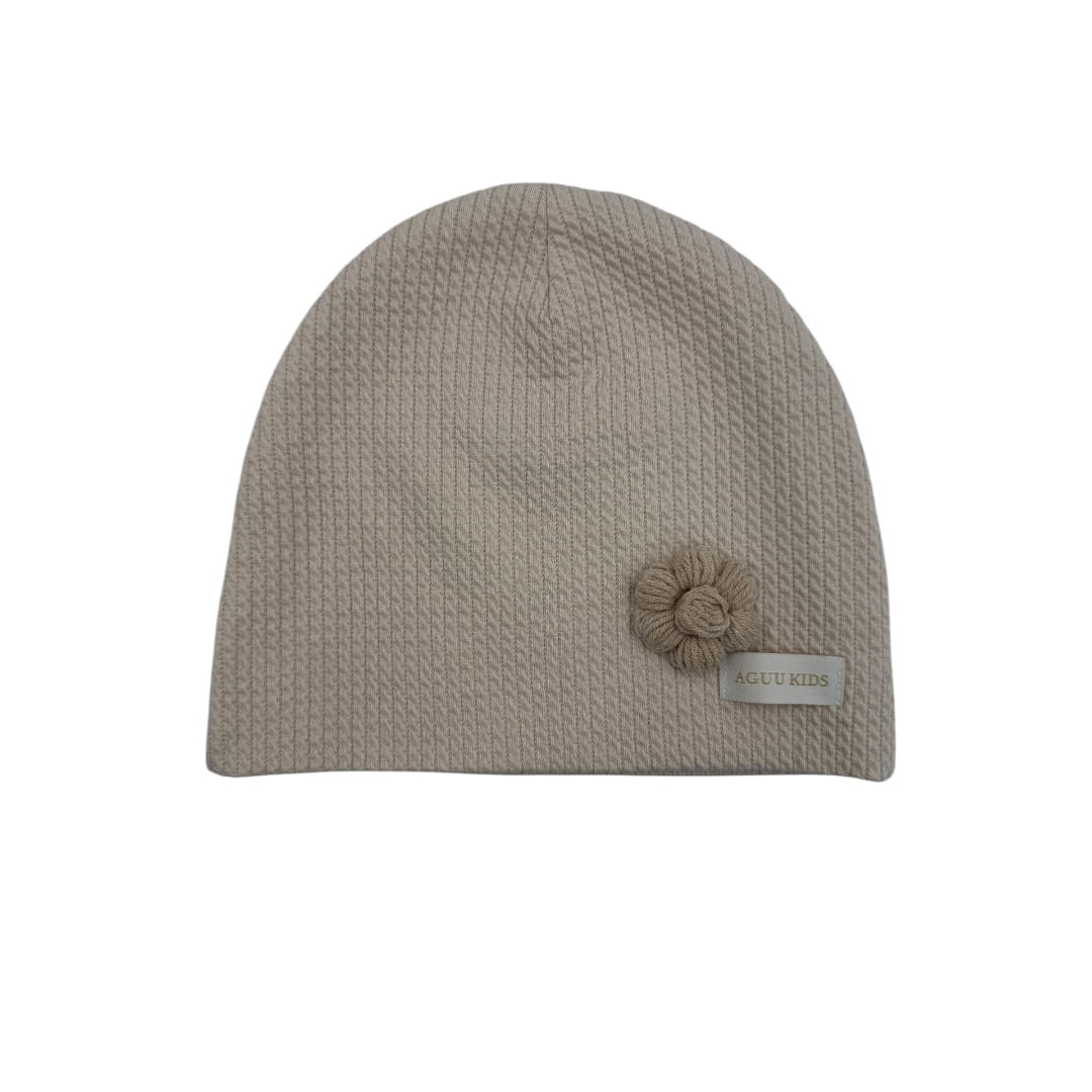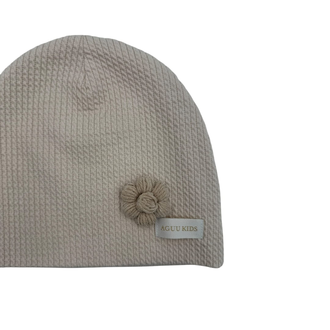 Czapka dla dziewczynki beżowa na wiosnę z kwiatkiem