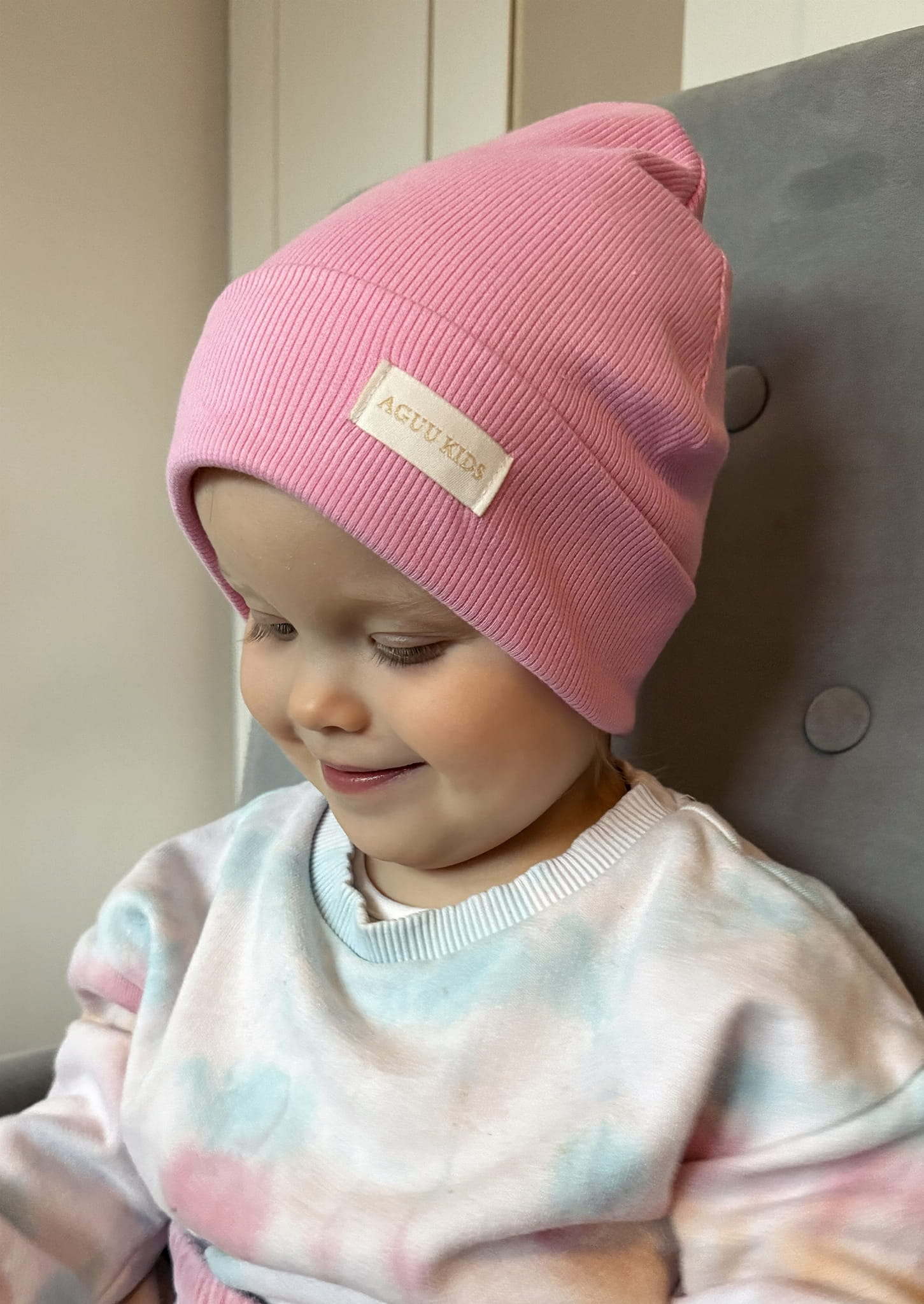 Czapka różowa podwójny prążek dla dziewczynki