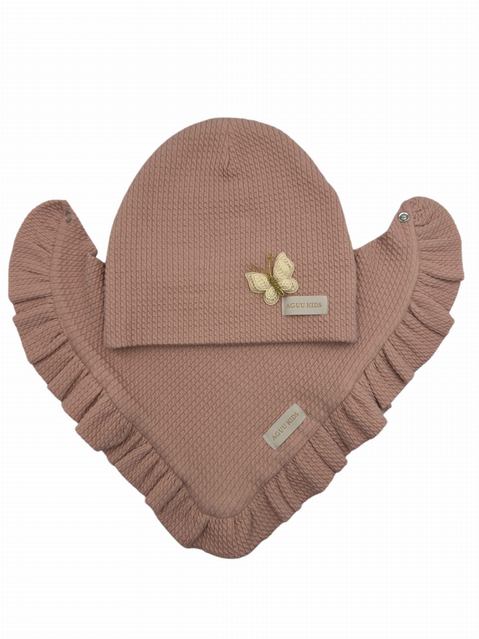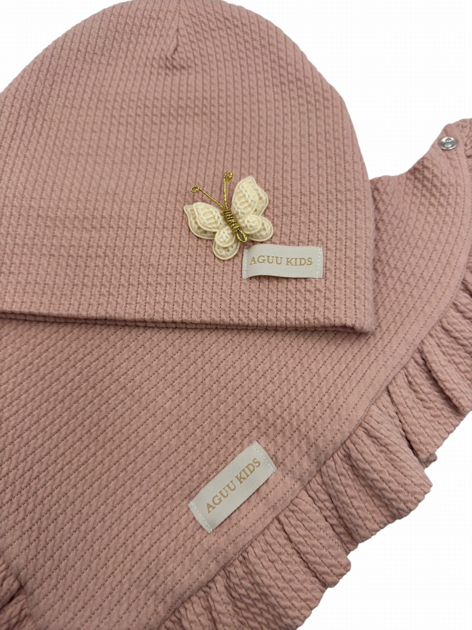 Czapka z motylem + chusta wiosna 2025 pastelowy róż