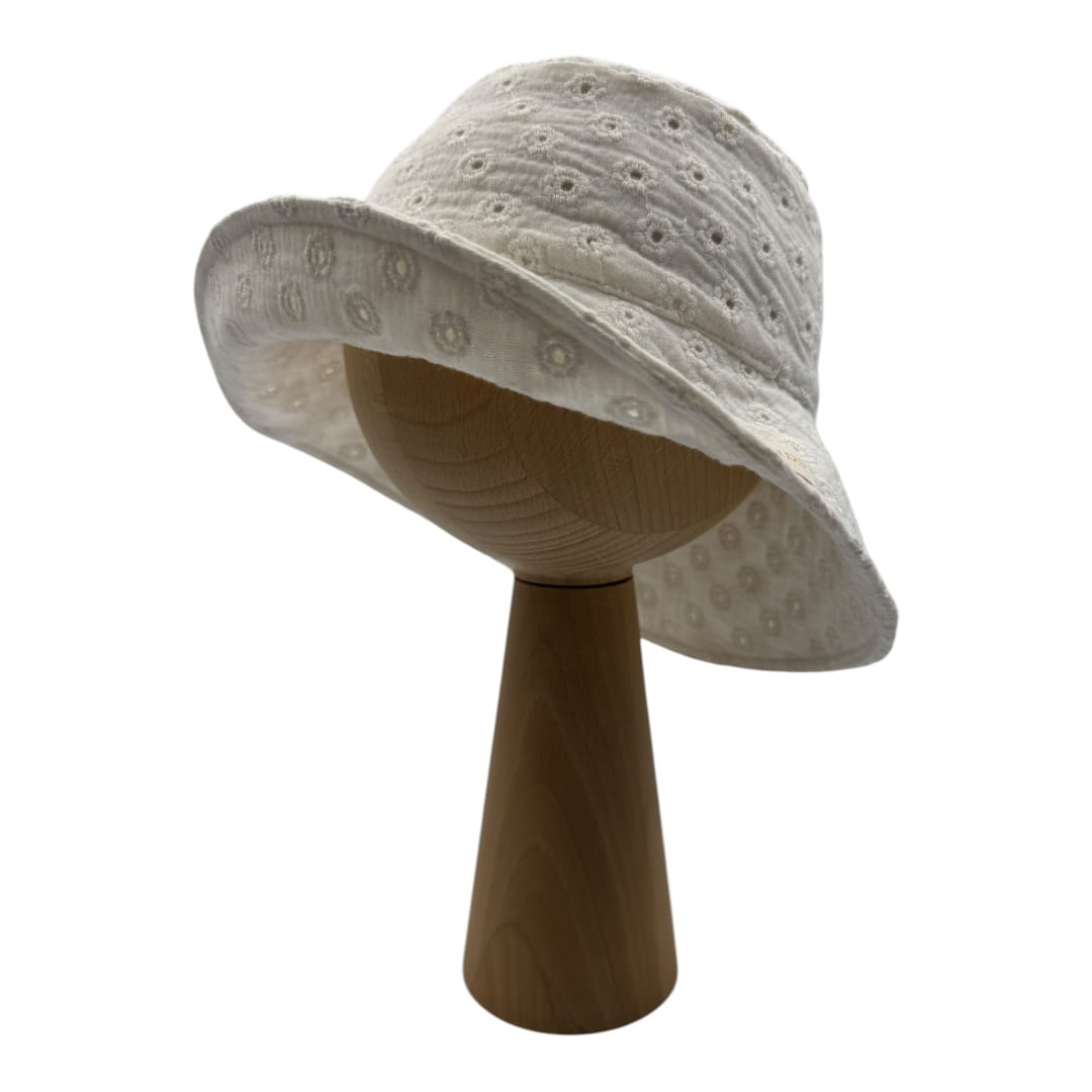 Elegancki kapelusz z muślinu haftowanego ecru
