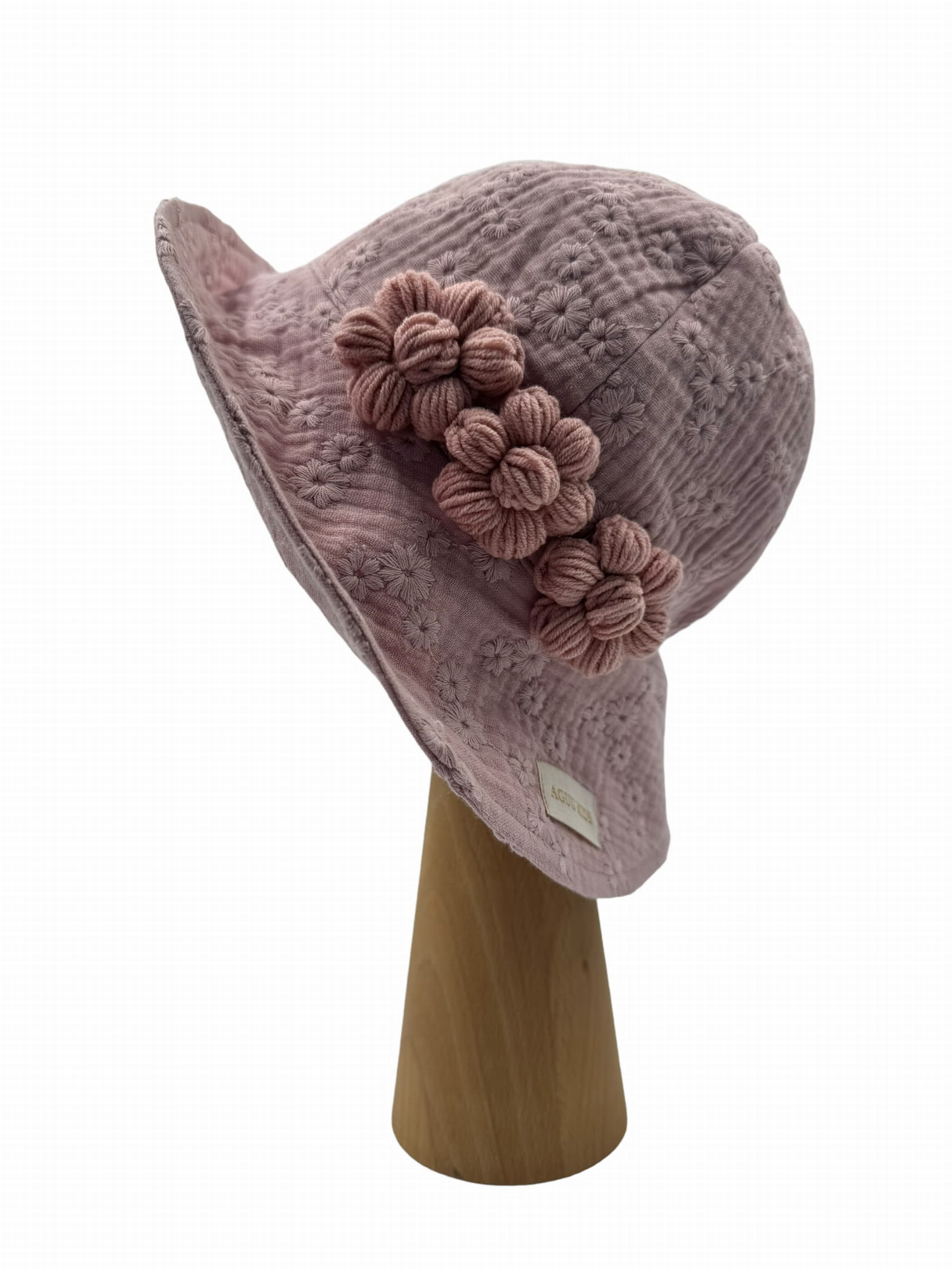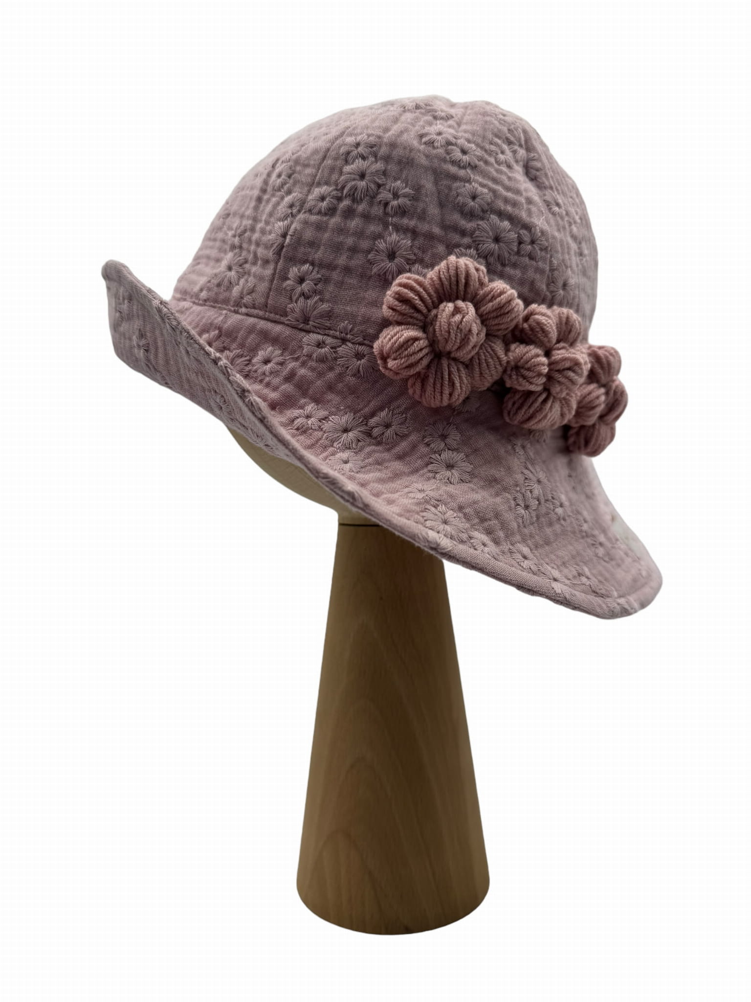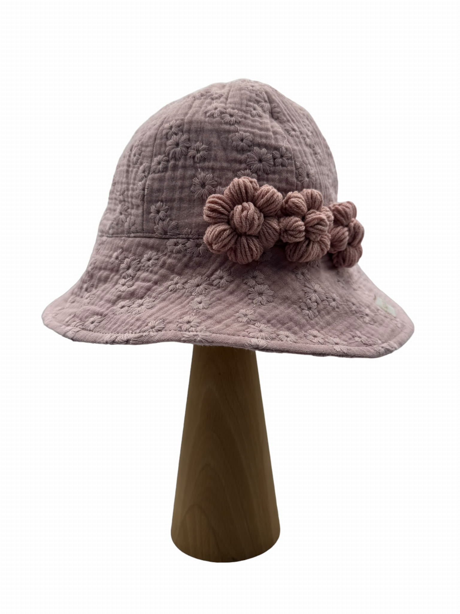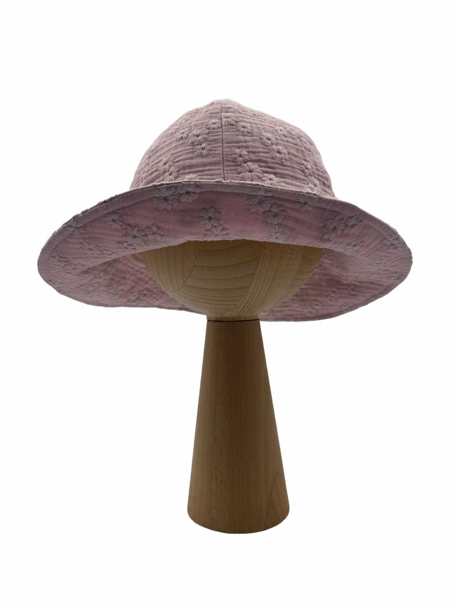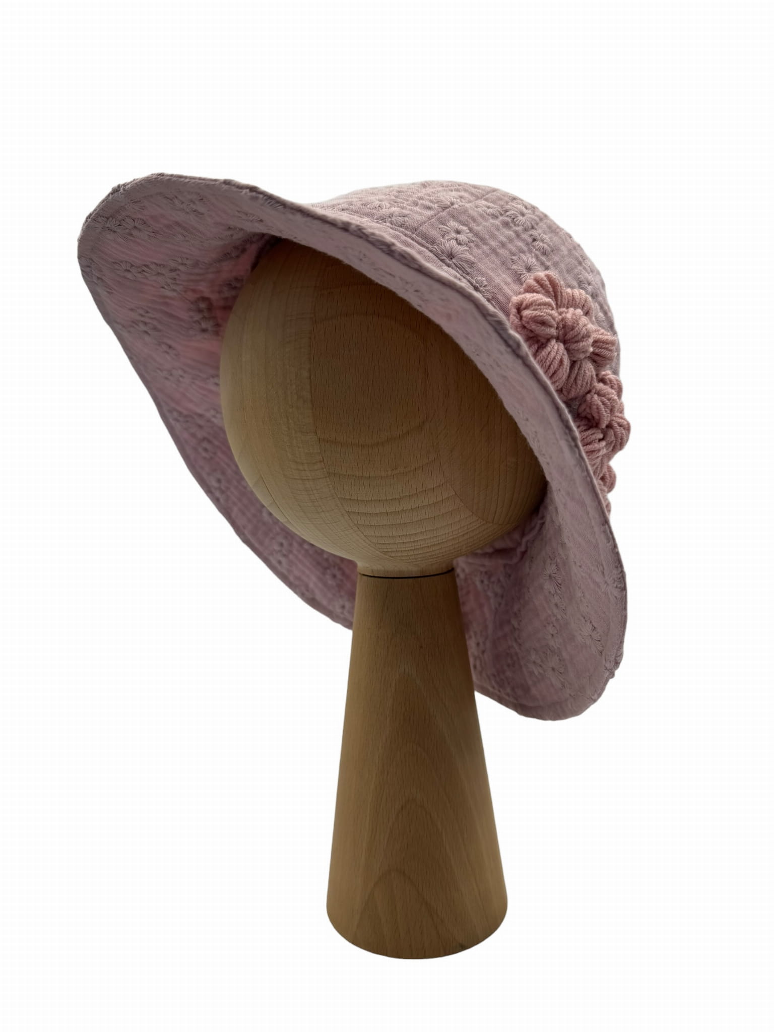 Kapelusz z muślinu haftowanego z kwiatkami brudny róż