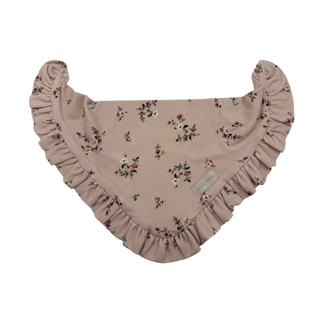 Kwiatowa chusta z falbaną różyczki na różu