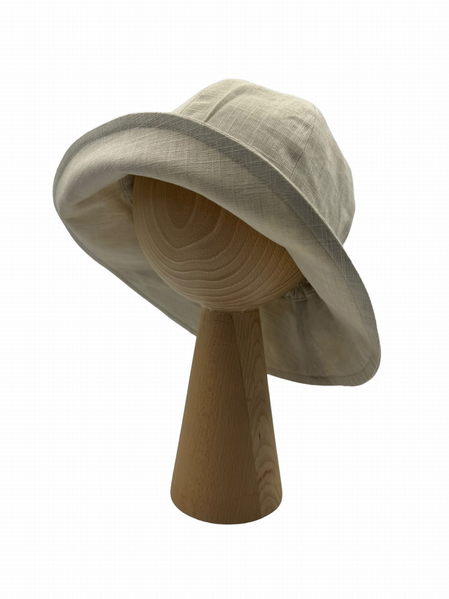 Lniany kapelusz dziewczęcy to nakrycie głowy uszyte z naturalnego lnu — tkaniny znanej z doskonałej przepuszczalności powietrza, lekkości i właściwości termoregulacyjnych. Dzięki temu kapelusz chroni głowę dziecka przed słońcem, a jednocześnie nie powoduje przegrzania.