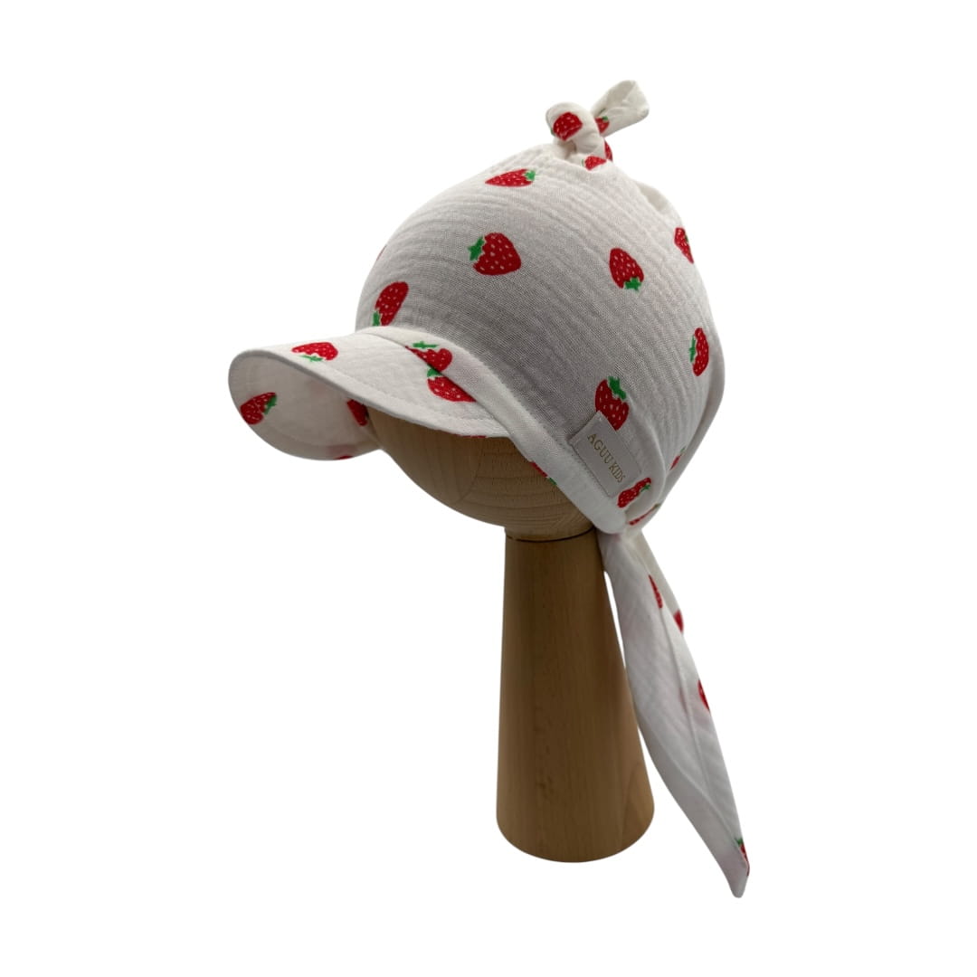 Lekki daszek skutecznie osłania oczy i twarz dziecka przed słońcem, a elastyczne wiązanie z tyłu zapewnia idealne dopasowanie do głowy – bez ucisku i dyskomfortu. To połączenie stylu i funkcjonalności, które pokochają zarówno dzieci, jak i rodzice.