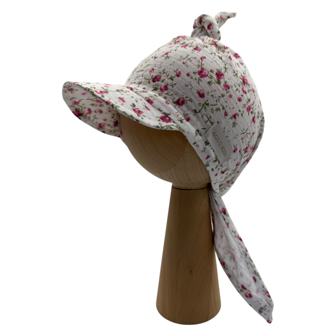 Lekki daszek skutecznie osłania oczy i twarz dziecka przed słońcem, a elastyczne wiązanie z tyłu zapewnia idealne dopasowanie do głowy – bez ucisku i dyskomfortu. To połączenie stylu i funkcjonalności, które pokochają zarówno dzieci, jak i rodzice.