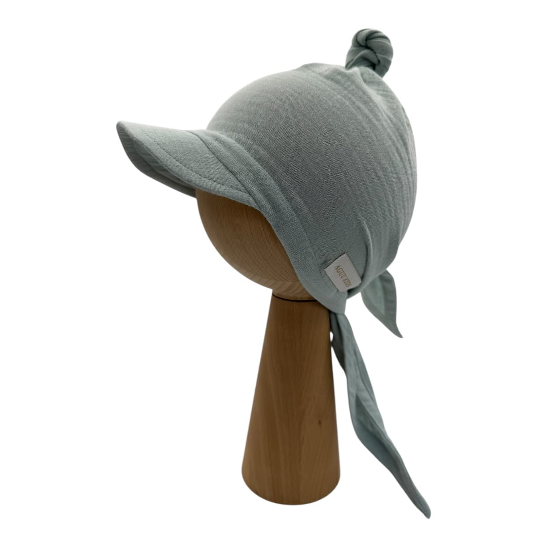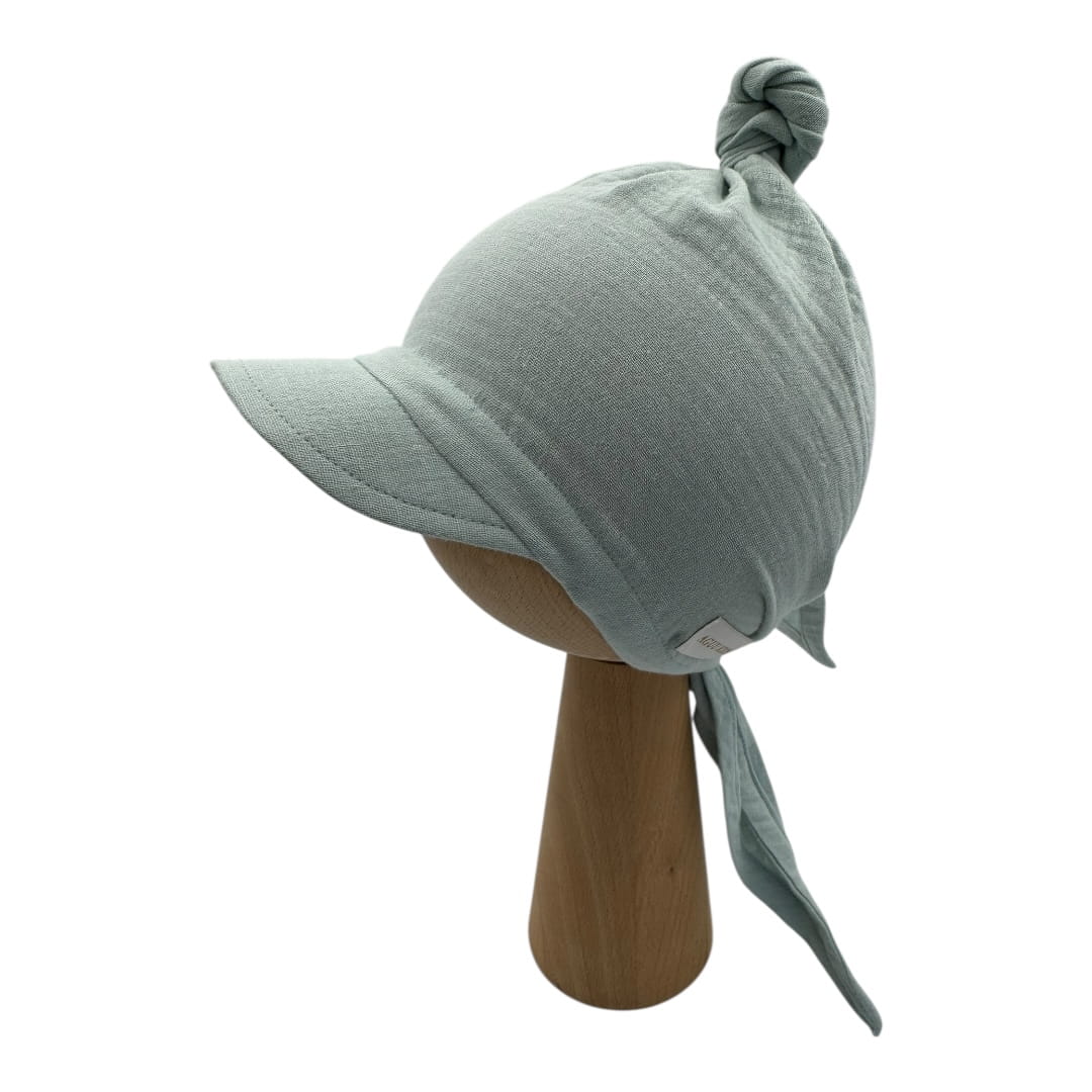 Muślinowa chusta z daszkiem wiązana kolor szałwiowy