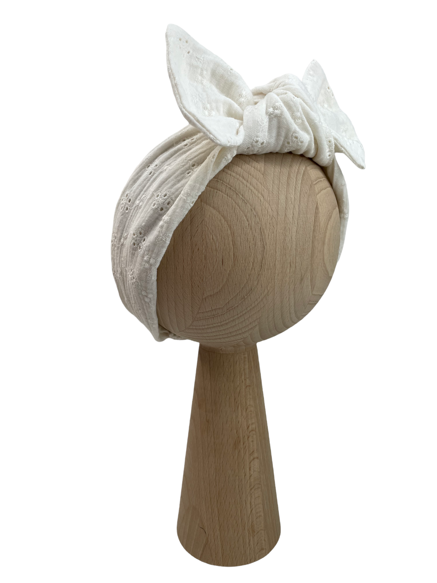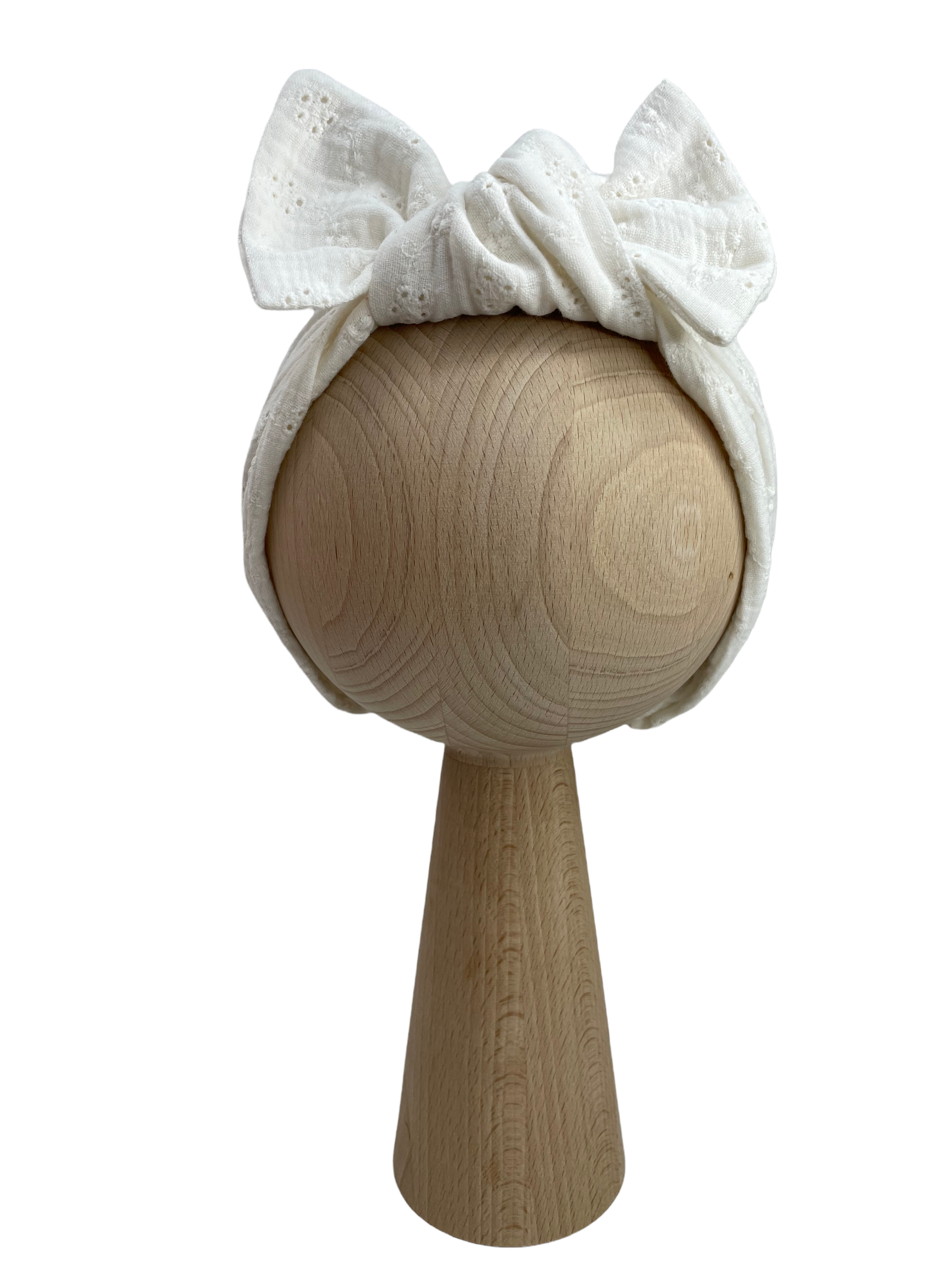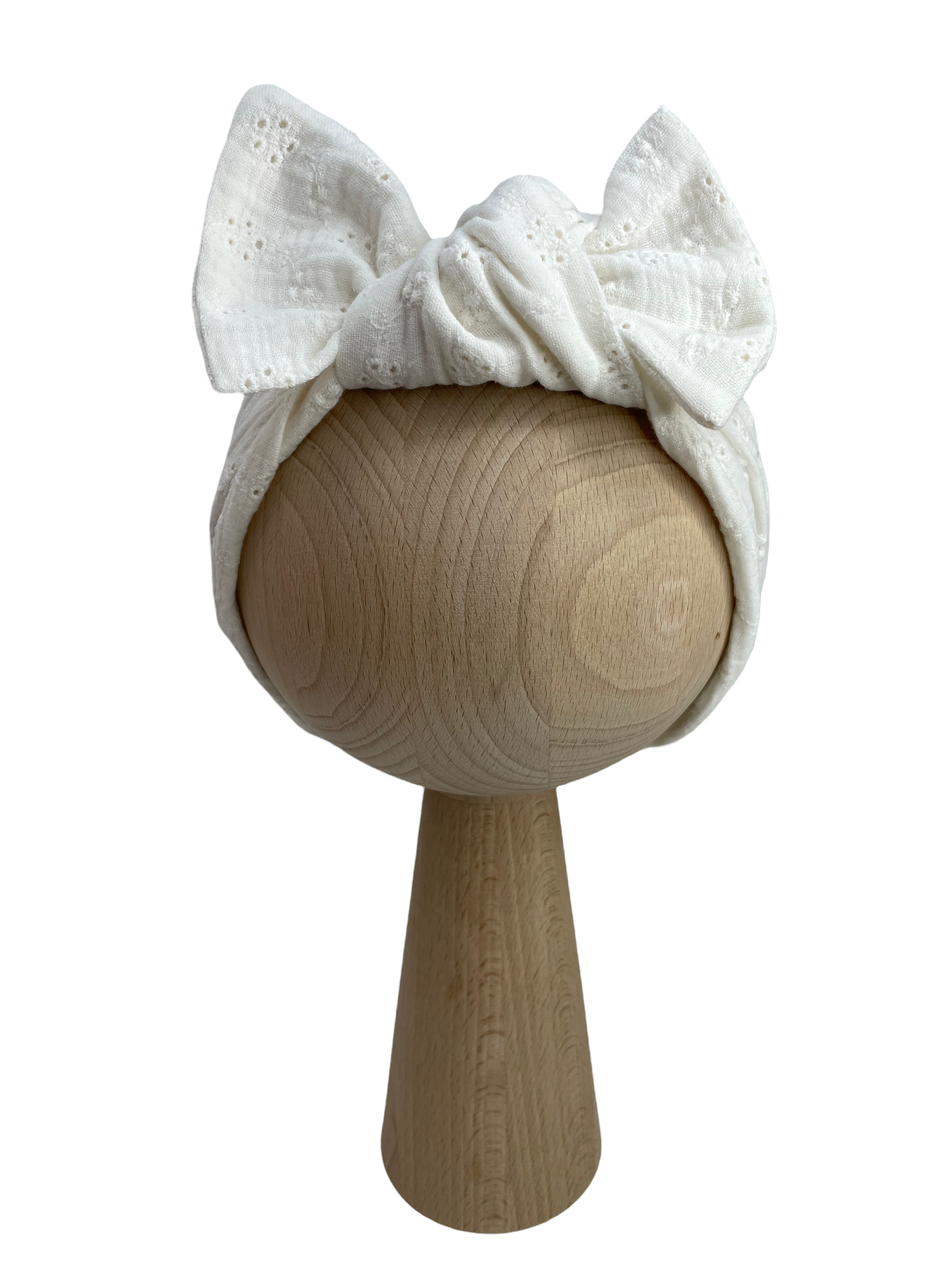 Wyjątkowa opaska wykonana z haftowanego muślinu z dużą kokardą tzw "big bow"