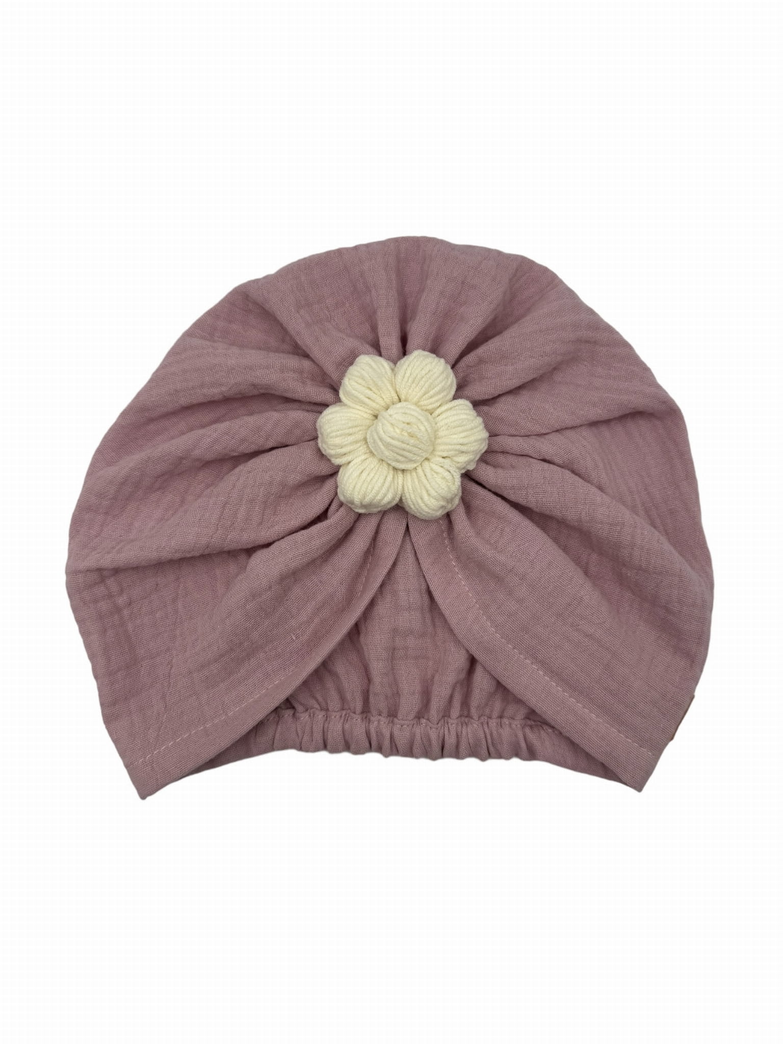 Muślinowy turban z ręcznie robionym kwiatem brudny róż