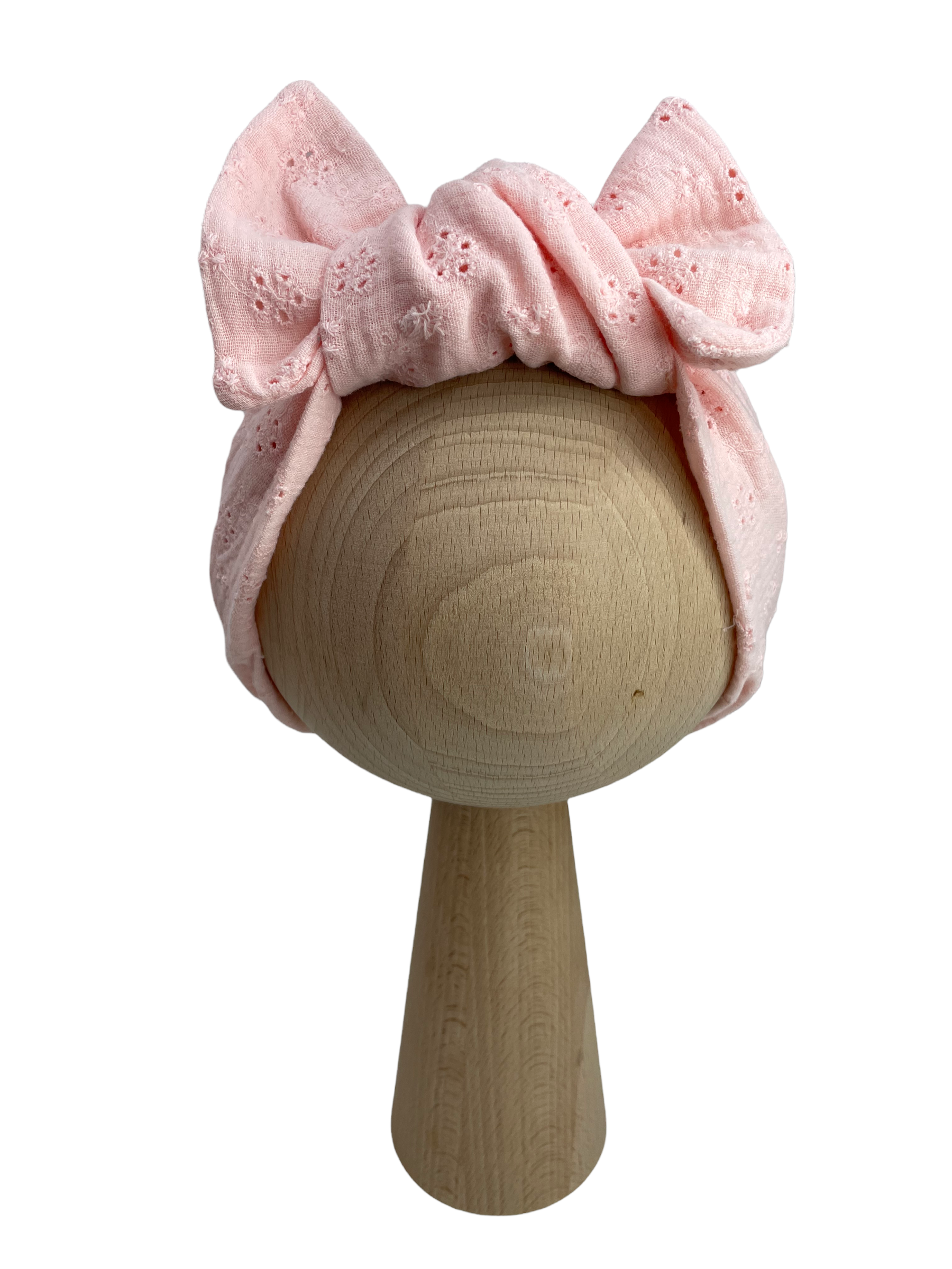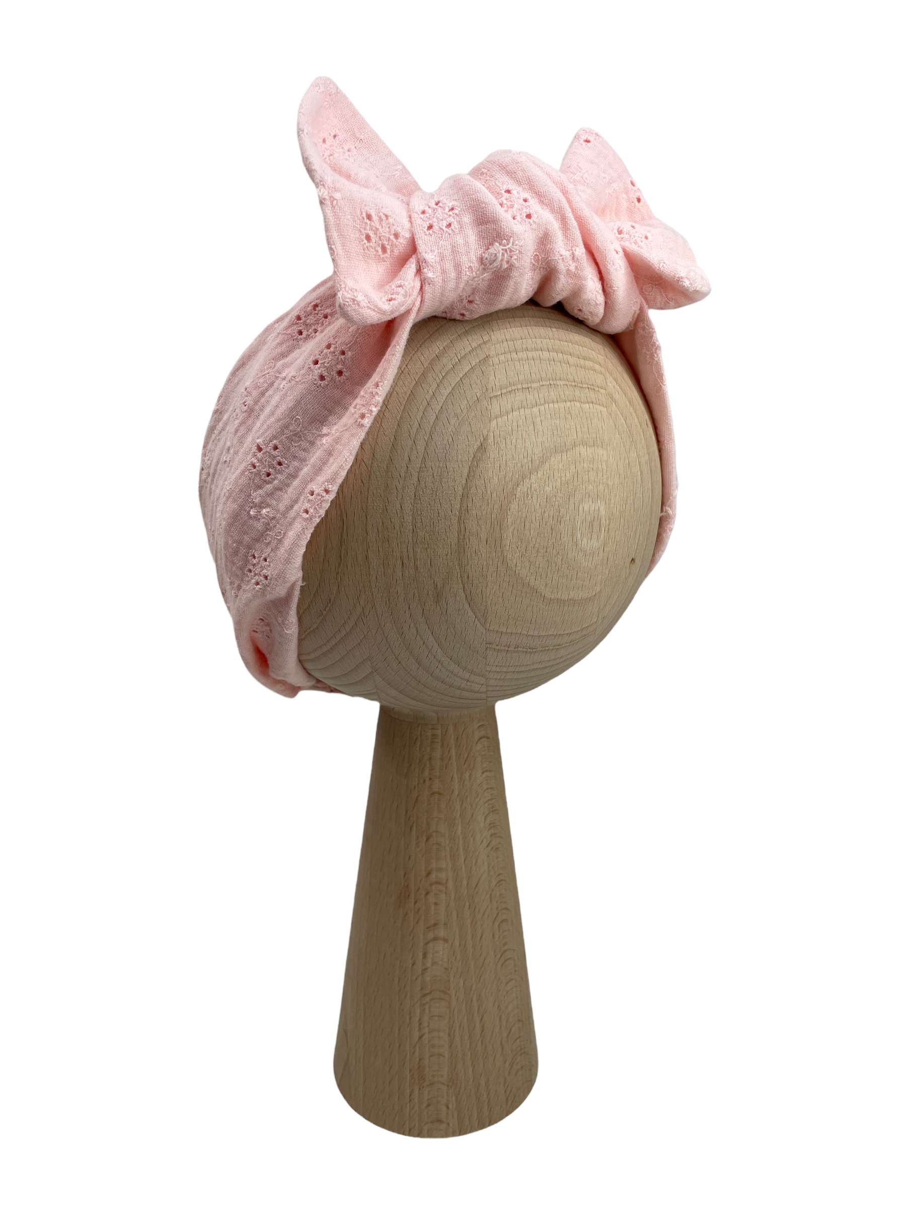 Wyjątkowa opaska wykonana z haftowanego muślinu z dużą kokardą tzw "big bow"