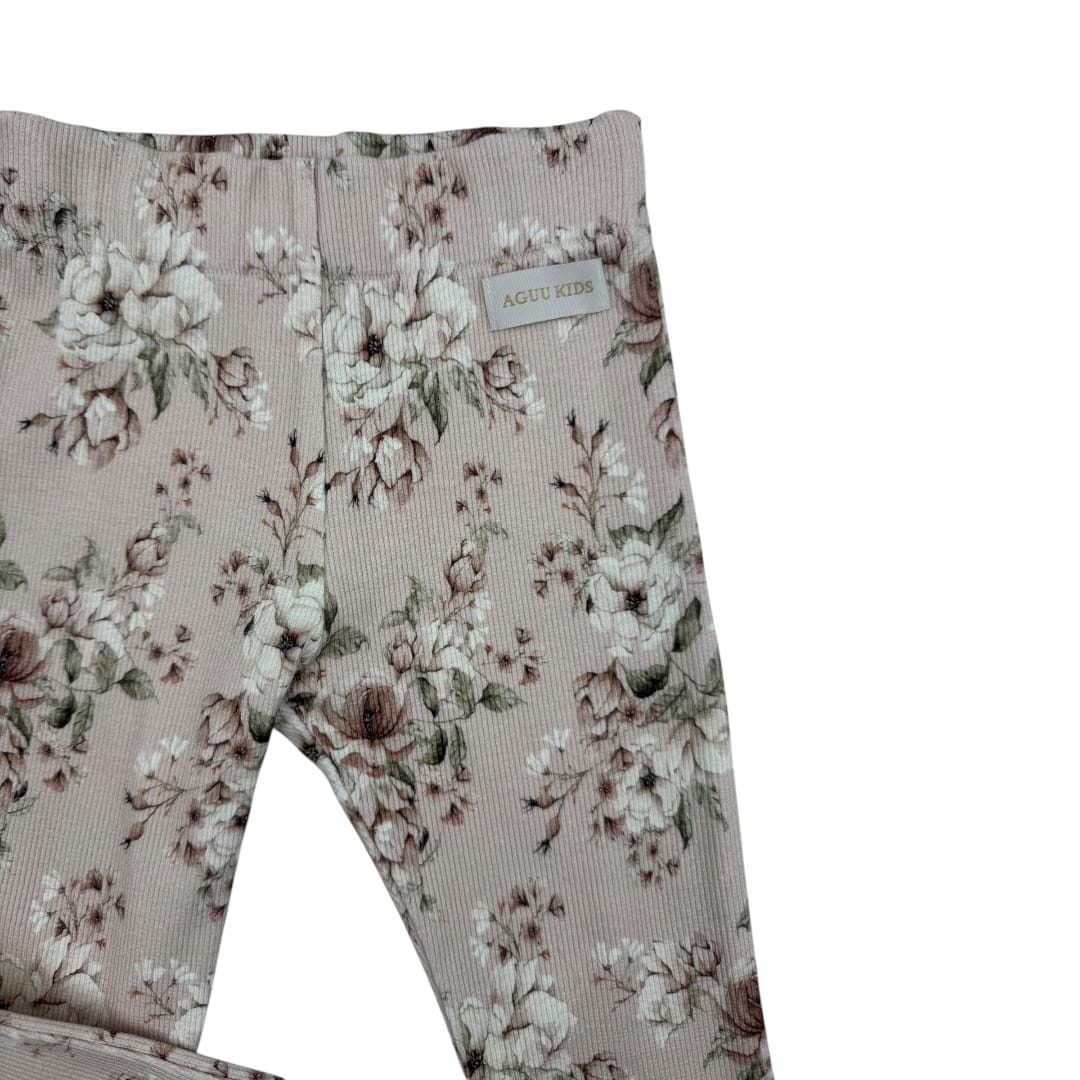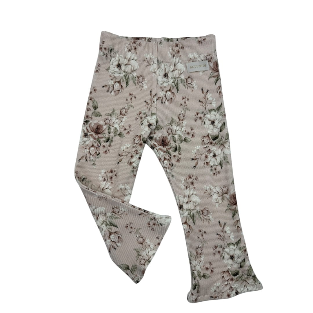 Spodnie dzwony dla dziewczynki prążek kwiaty na różu