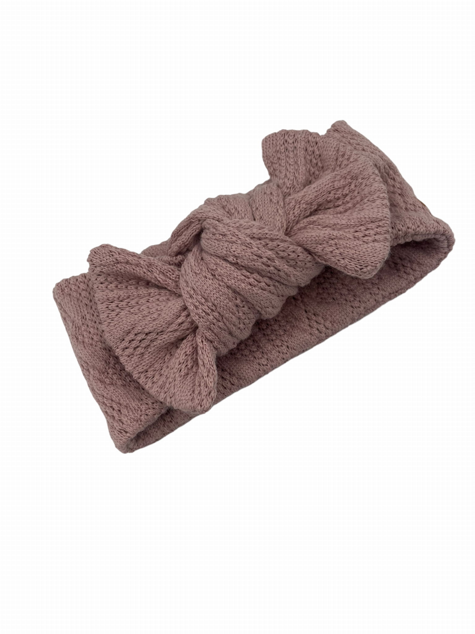 Sweterkowa opaska BIG bow brudny róż babygirl
