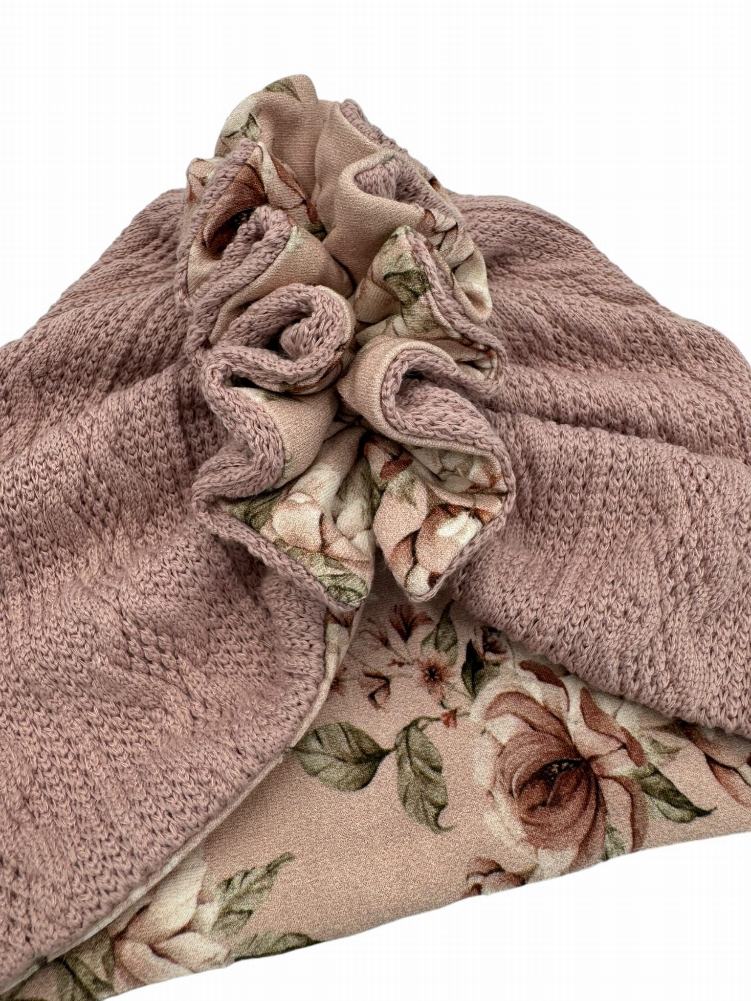 Sweterkowy zestaw turban falbanka + golf brudny róż
