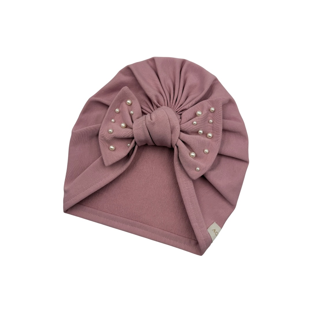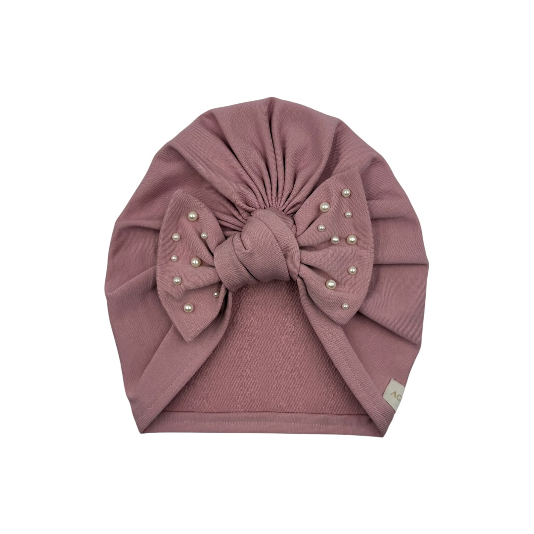 Turban dla dziewczynki z kokardą i perełkami pustynny róż