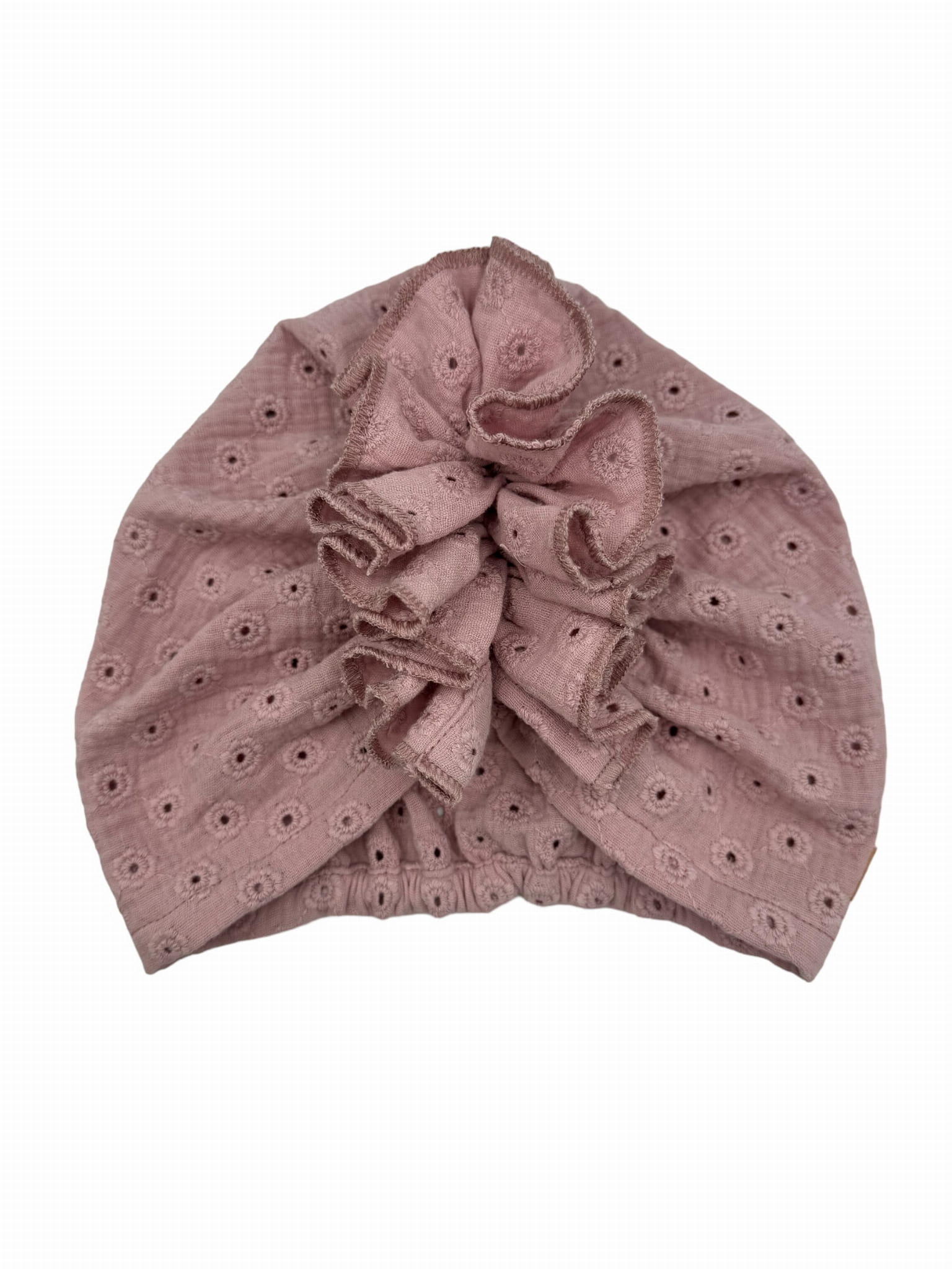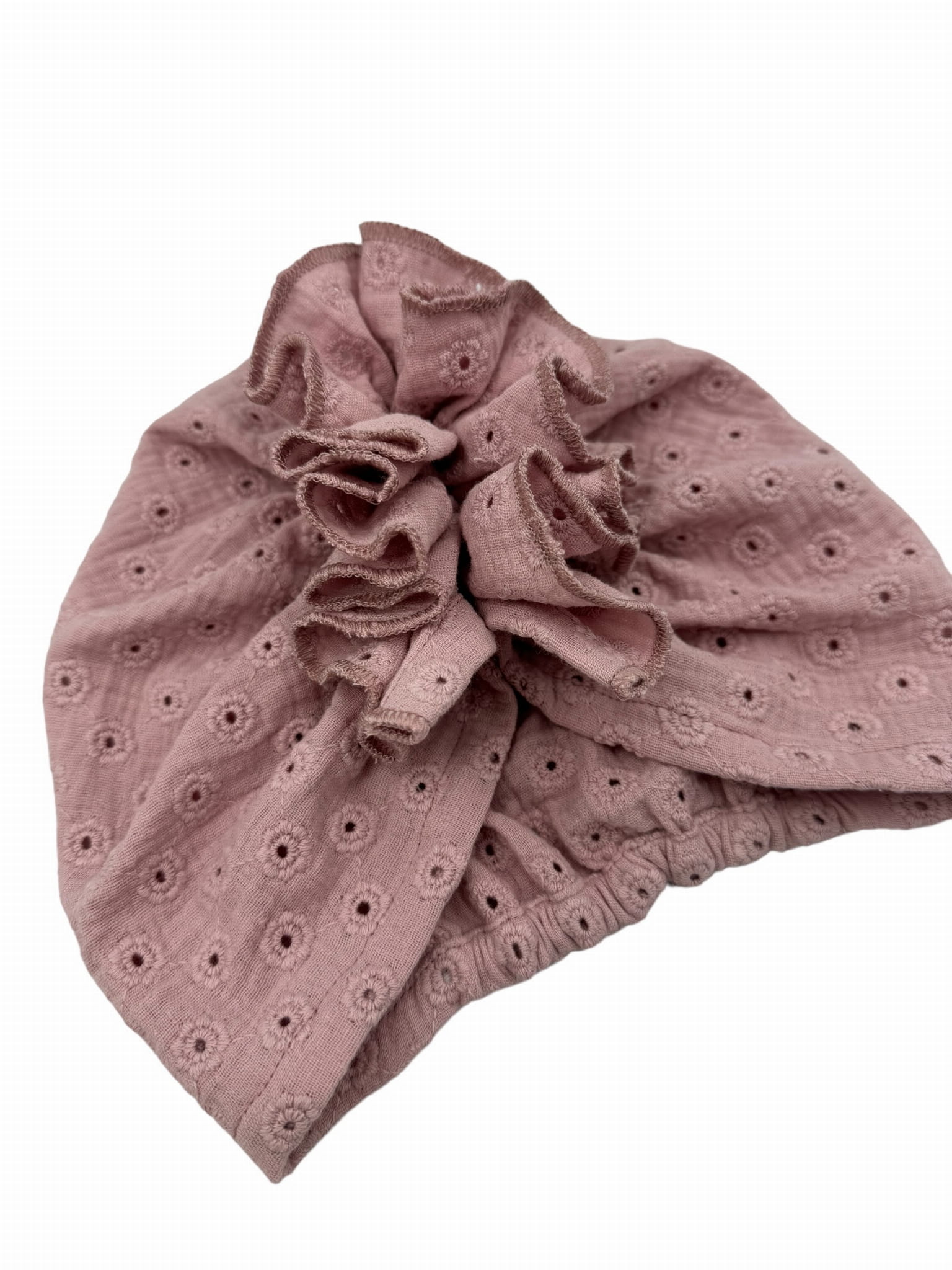 Turban falbanka muślin haftowany brudny róż na lato