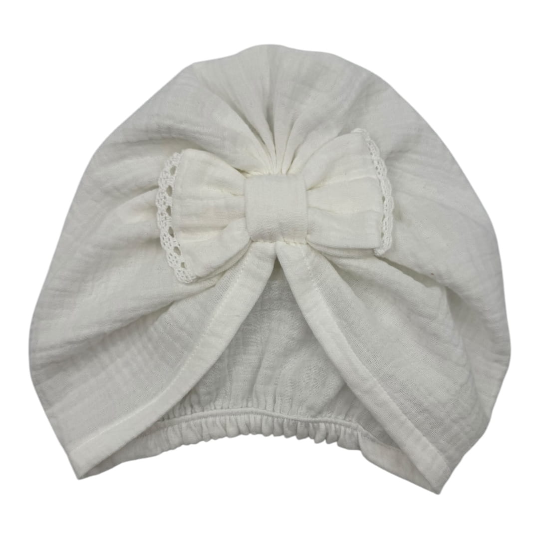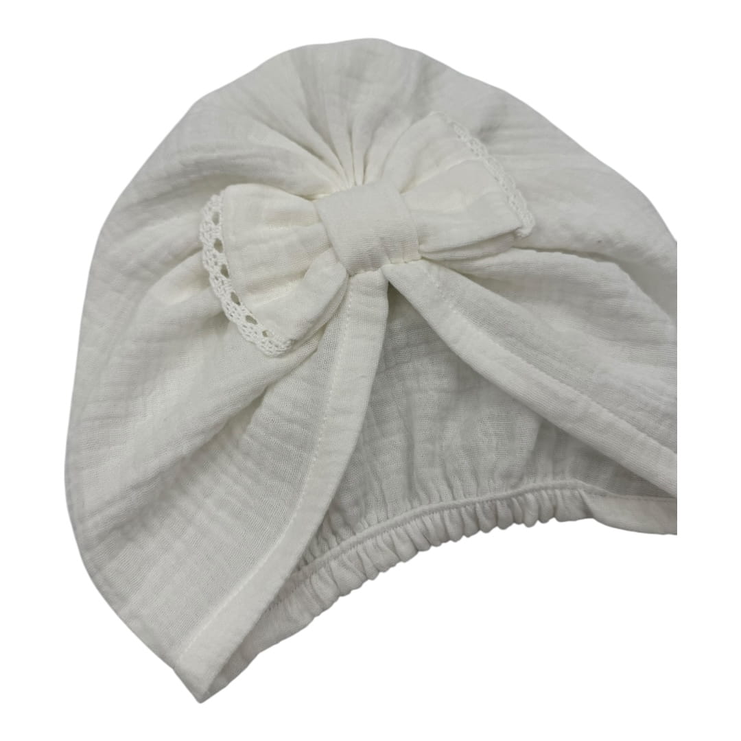 Turban kokarda z ozdobnym haftem muślinowy na lato ecru