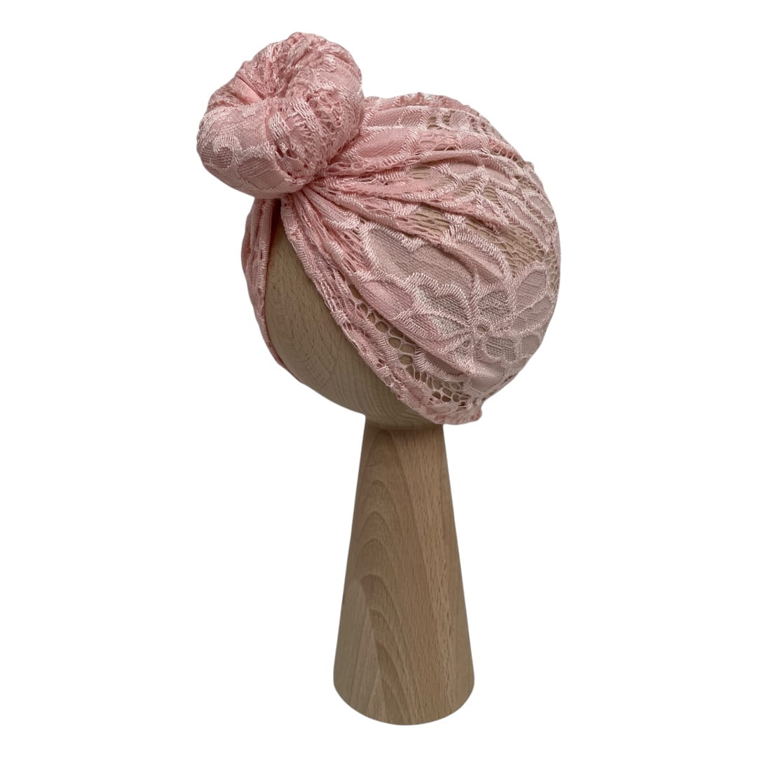 Turban z koronki w kolorze jasnego różu