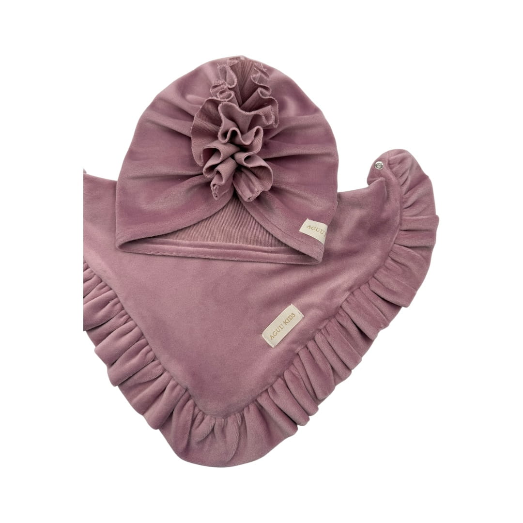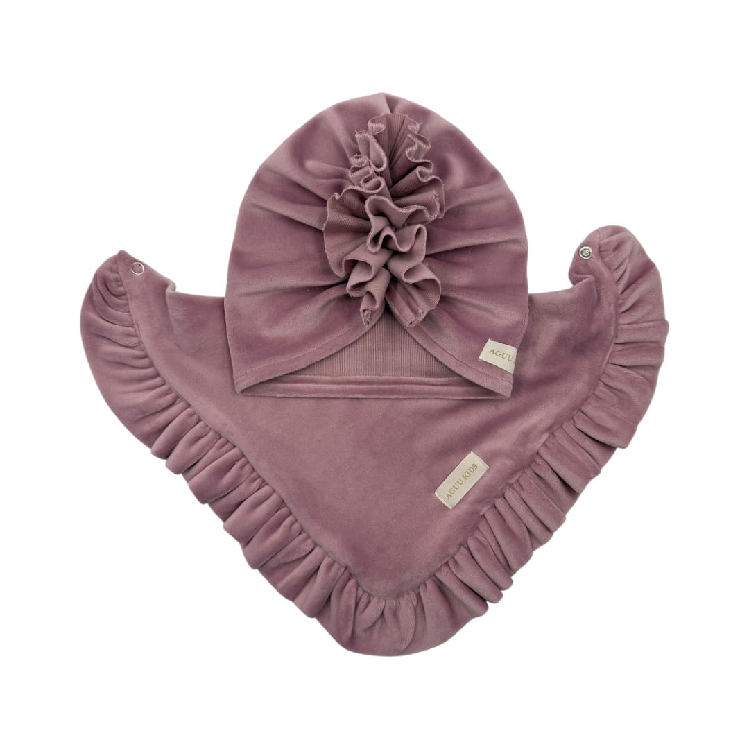 Welurowy zestaw na jesień turban falbanka + chusta brudny róż
