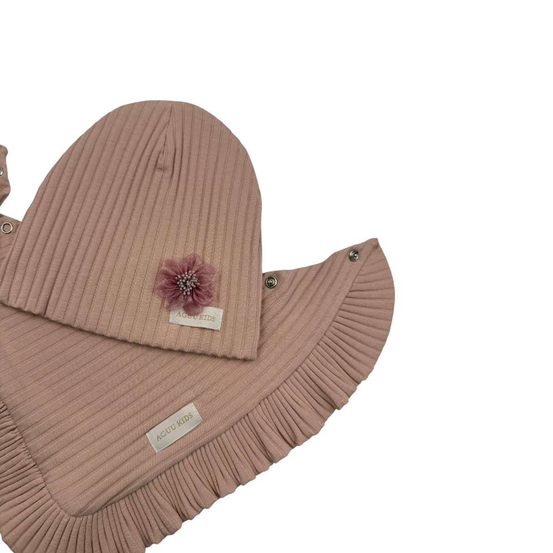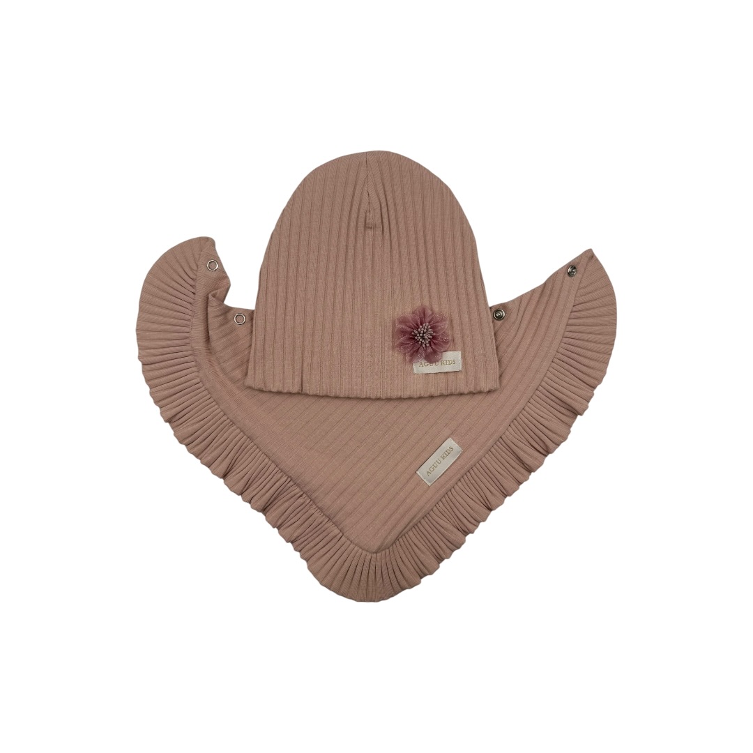 Wyjątkowy zestaw z kwiatkiem prążek pastelowy czapka i chusta
