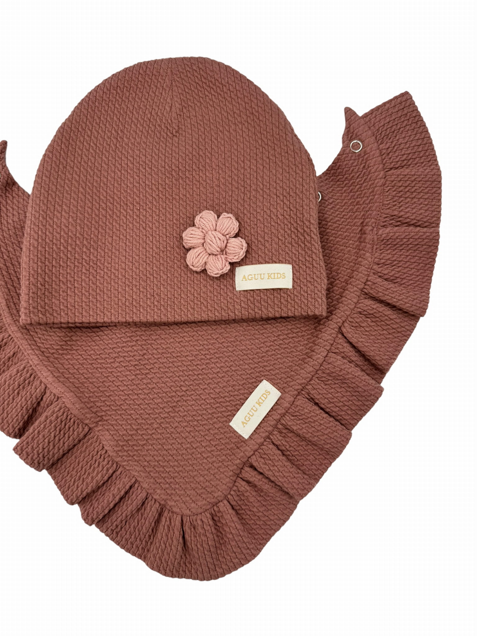 Zestaw dla dziewczynki czapka+ chusta old rose