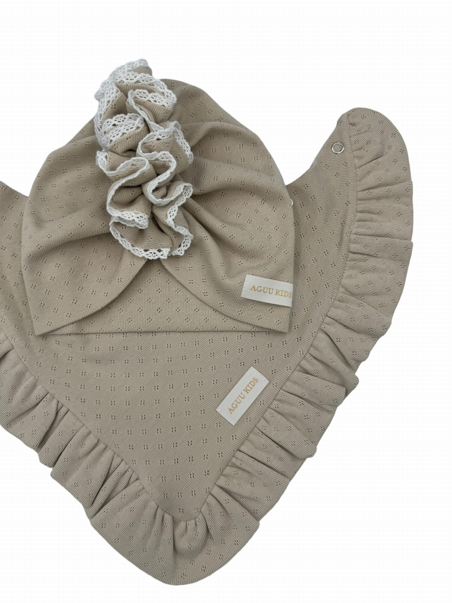 Do turbanu wszyta jest bawełniana koronka, która nadaje mu wyjątkowego uroku.