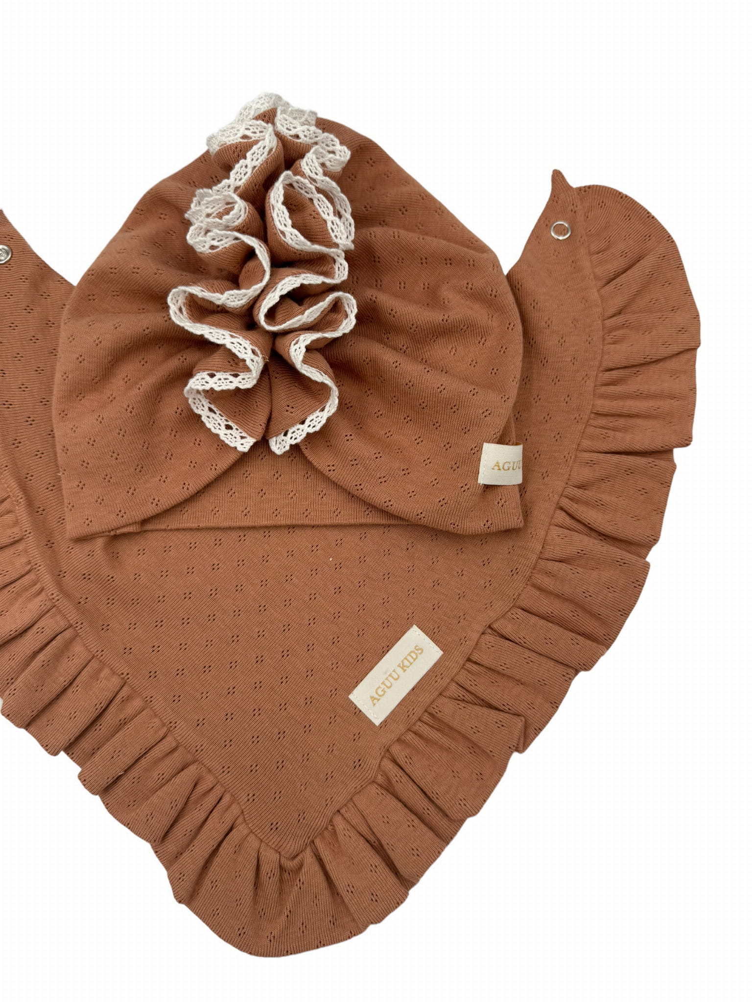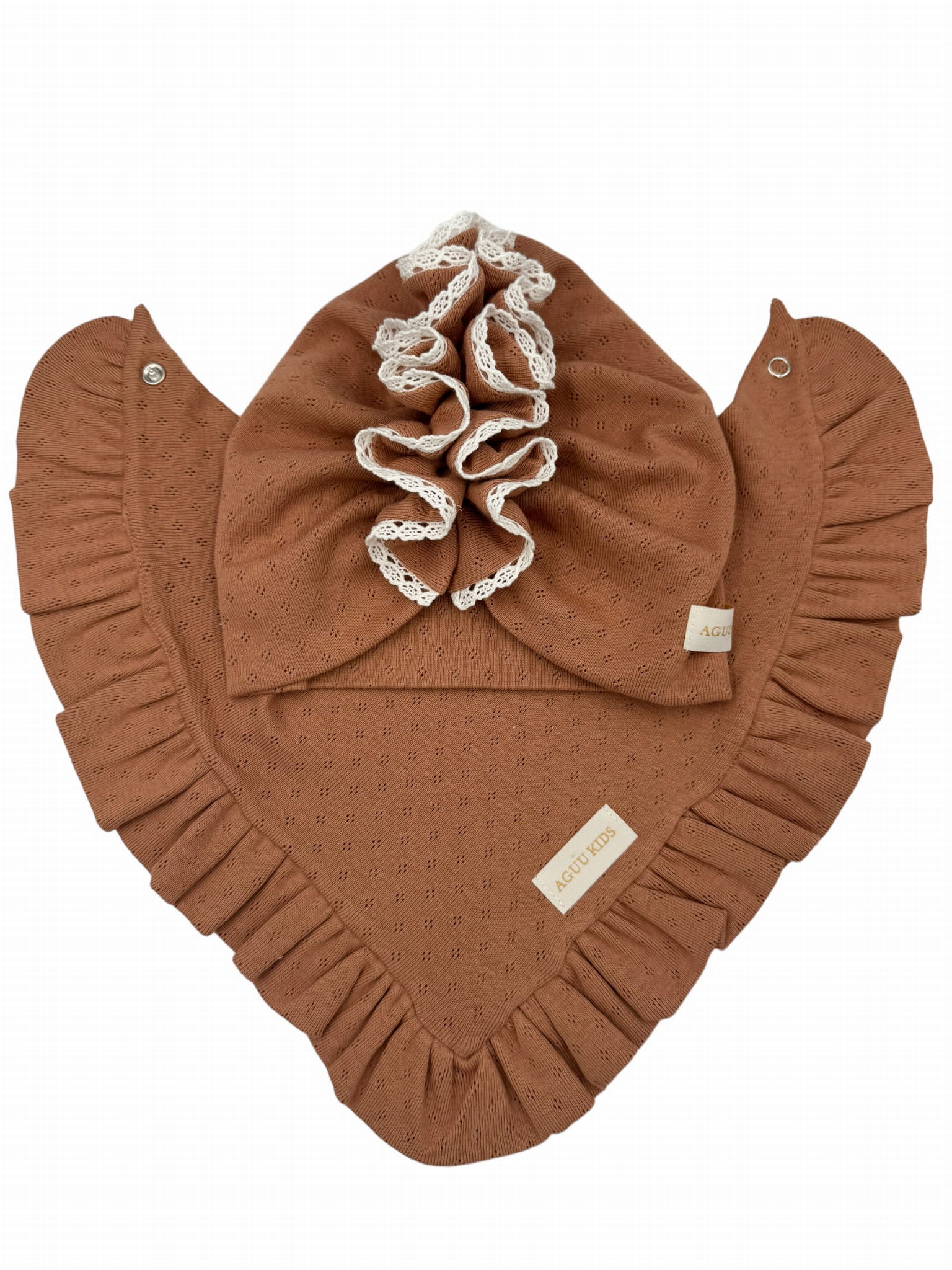 Do turbanu wszyta jest bawełniana koronka, która nadaje mu wyjątkowego uroku.