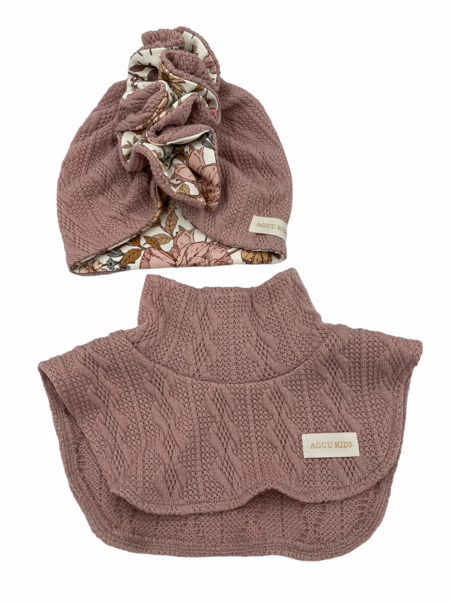 Zestaw zimowy turban falbanka + golf brudny róż/retro